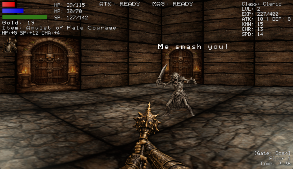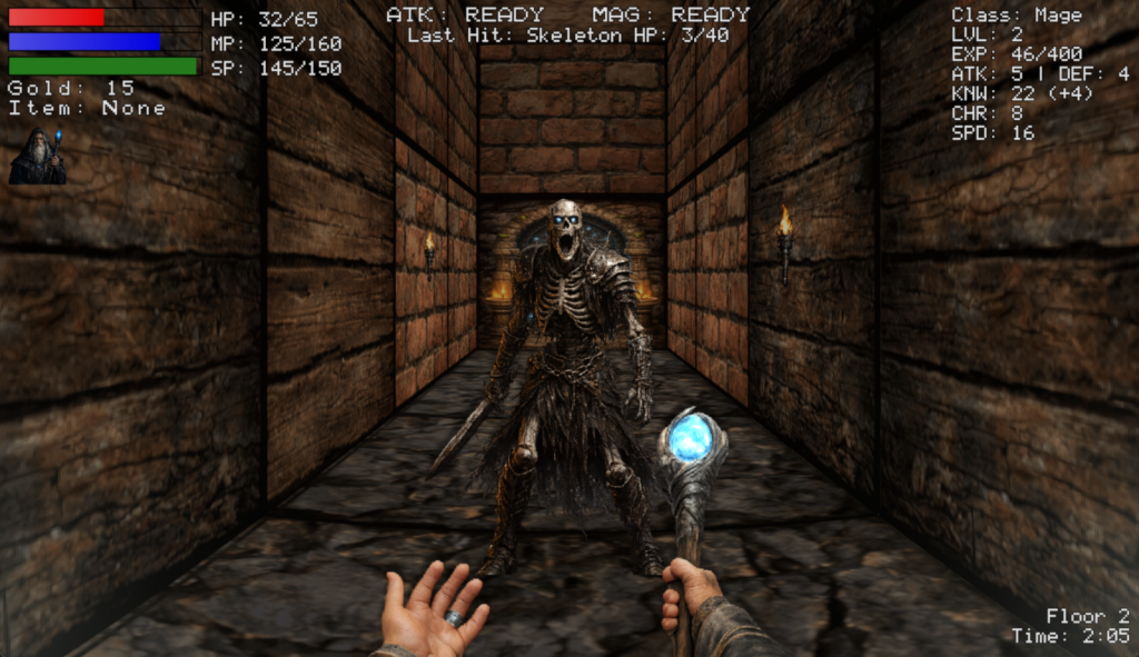Orfeo’s Dungeon is a retro-style first-person dungeon crawler inspired by DOOM and classic tabletop RPGs.